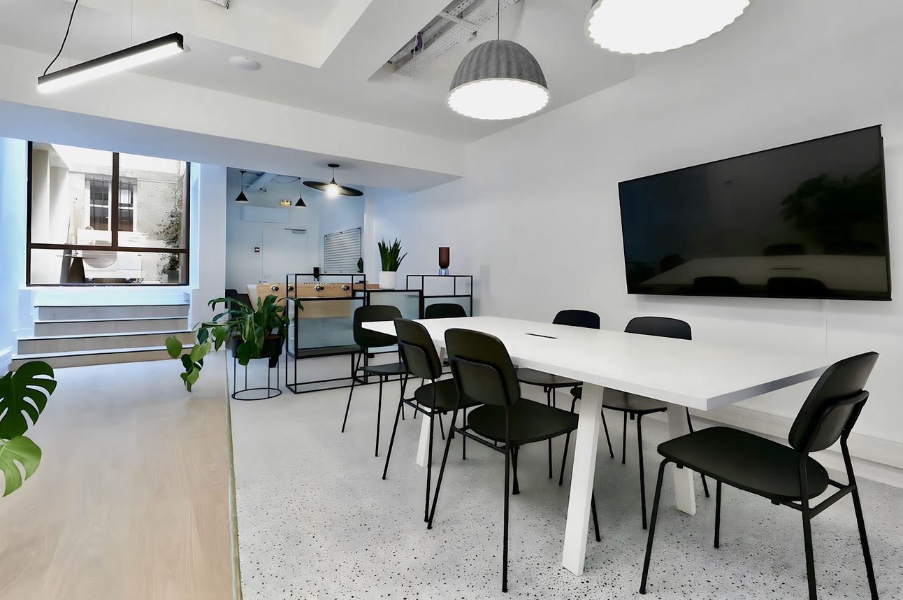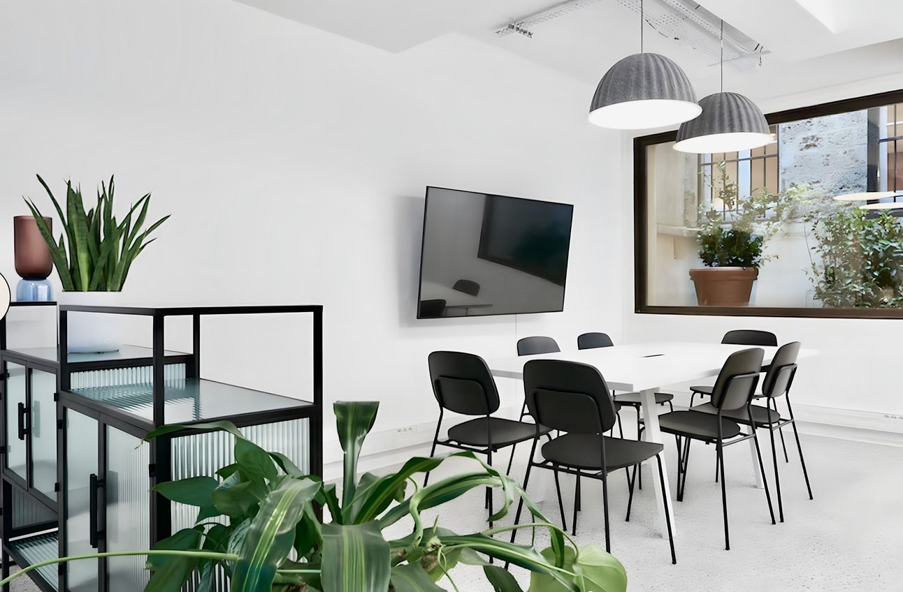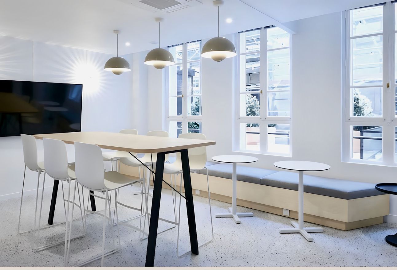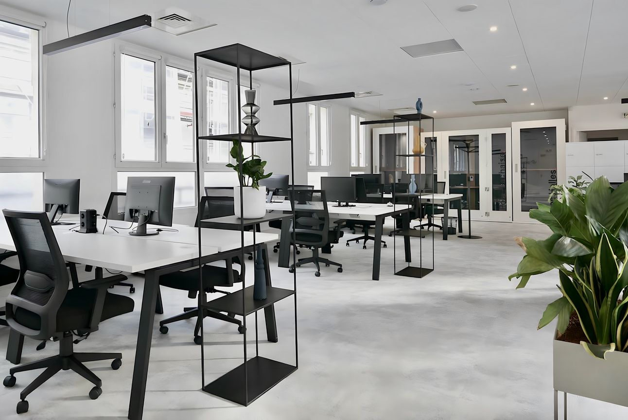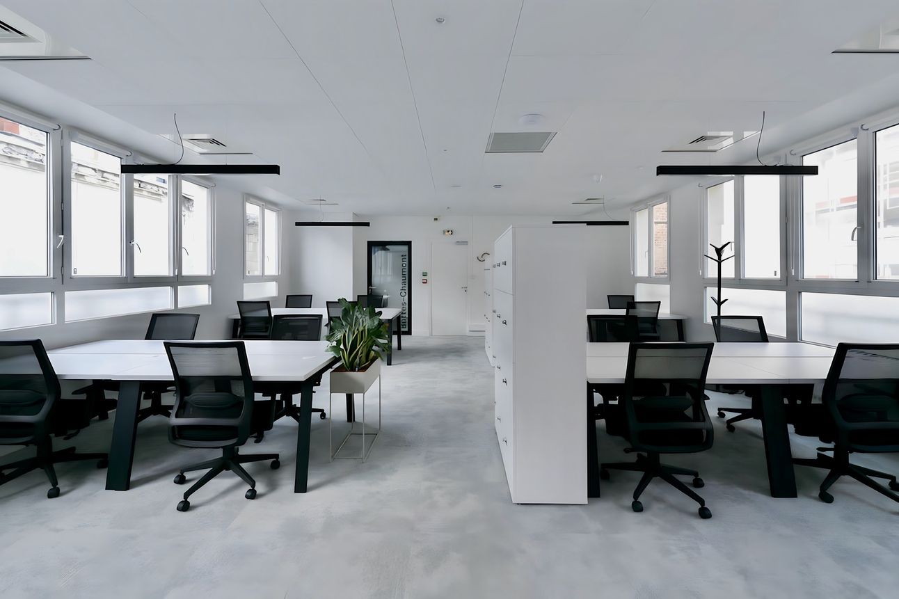 Bureaux clés en mains organisés en espaces ouverts, salles de réunion, espace détente, cuisine