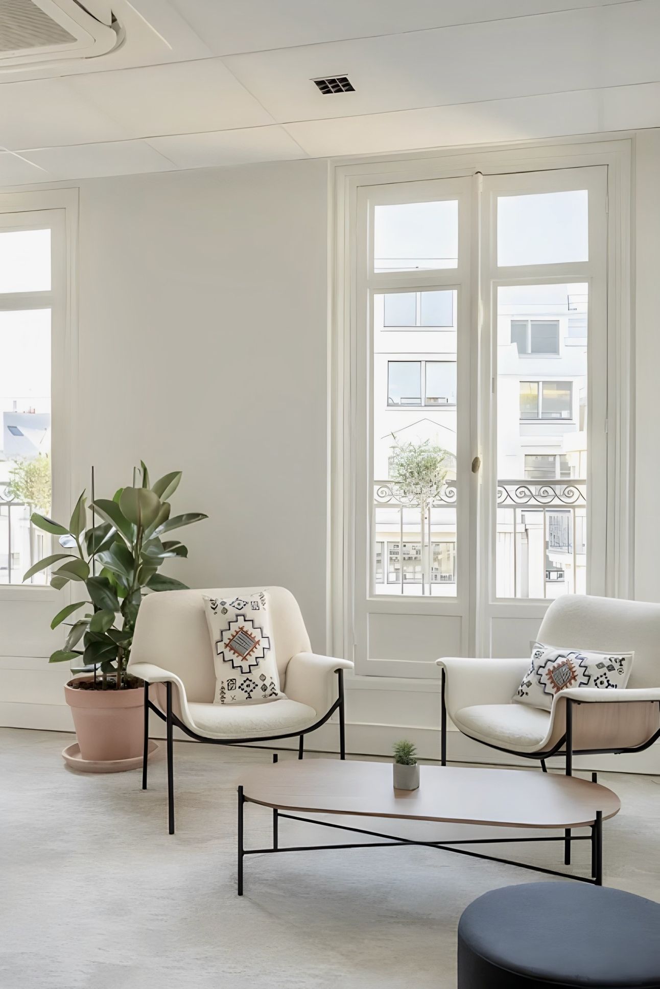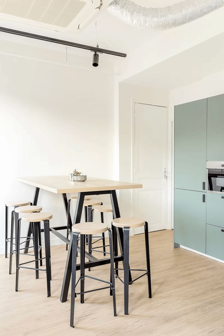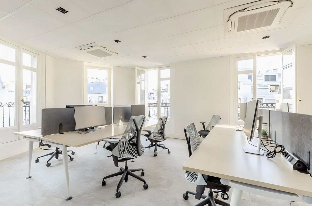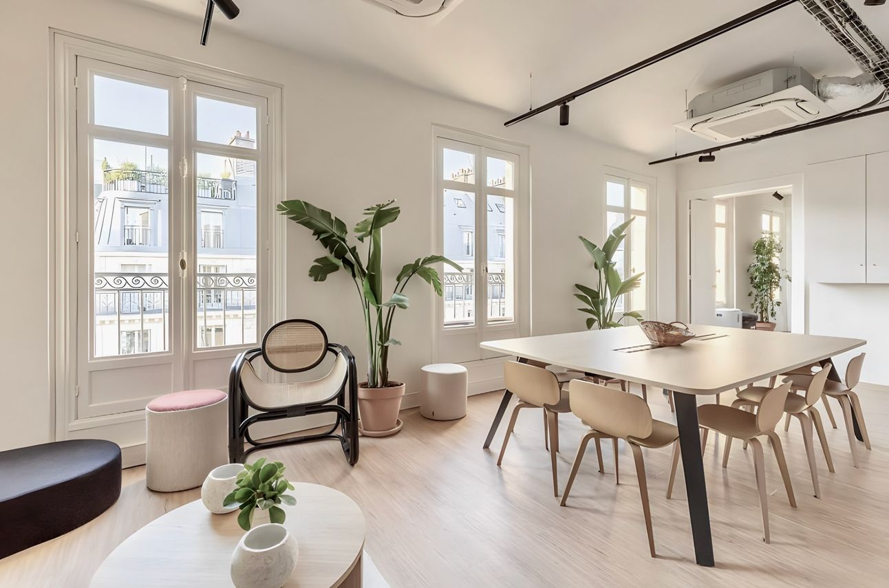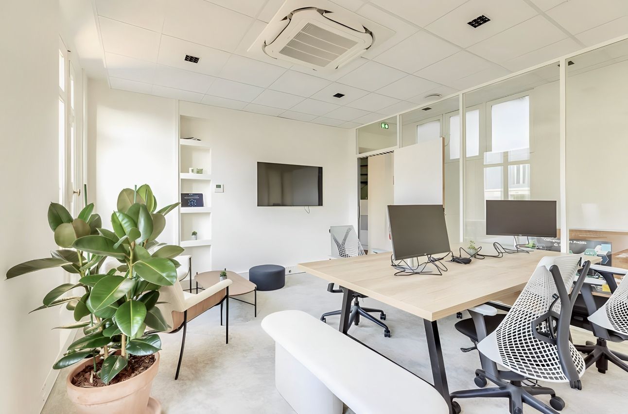 45 postes de travail organisés en espaces ouverts et modulables avec salles de réunion, espace détente et cuisine.