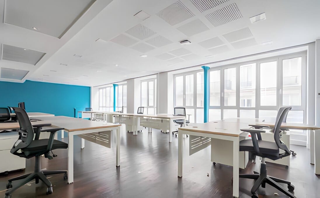 Locaux rénovés organisés en espaces ouverts, salles de réunion et espace détente