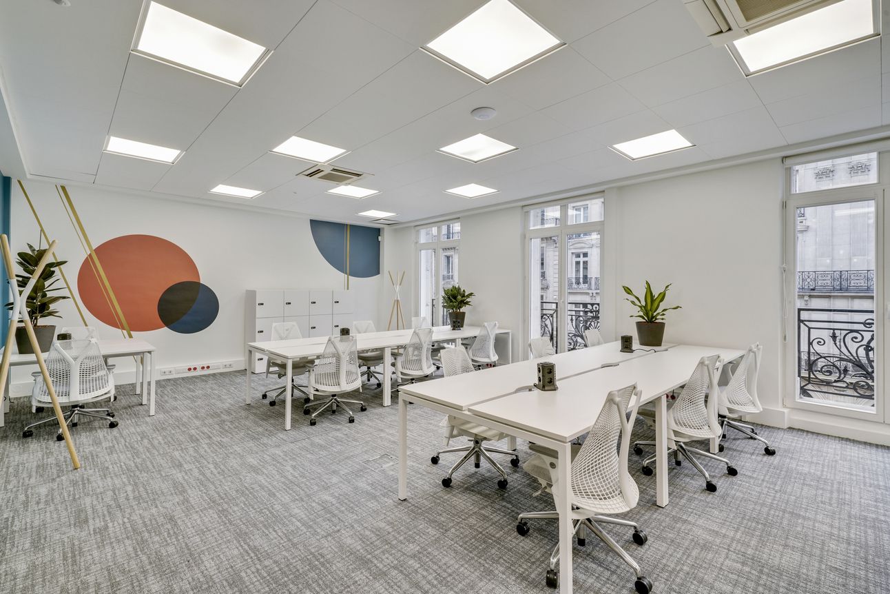 Locaux organisés en espace ouvert, salles de réunion, espace détente